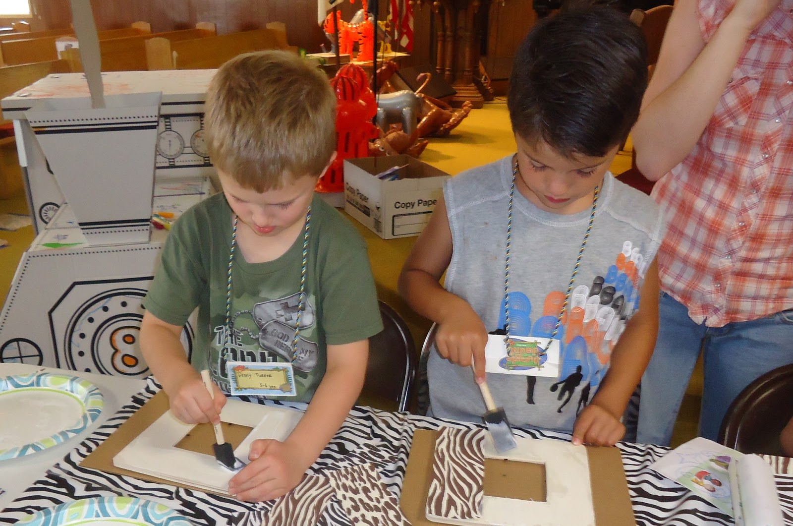 More Bible School! This time it was at our church. I was so excited to get to go! It was a jungle theme - Mama made the Jungle Express for the craft area. She was the engineer and I wanted to wear my engineer hat and be her helper!