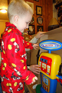 And we got fun surprises from Grandma and Grandpa, too! Denny has a Scooby Doo slot car track...